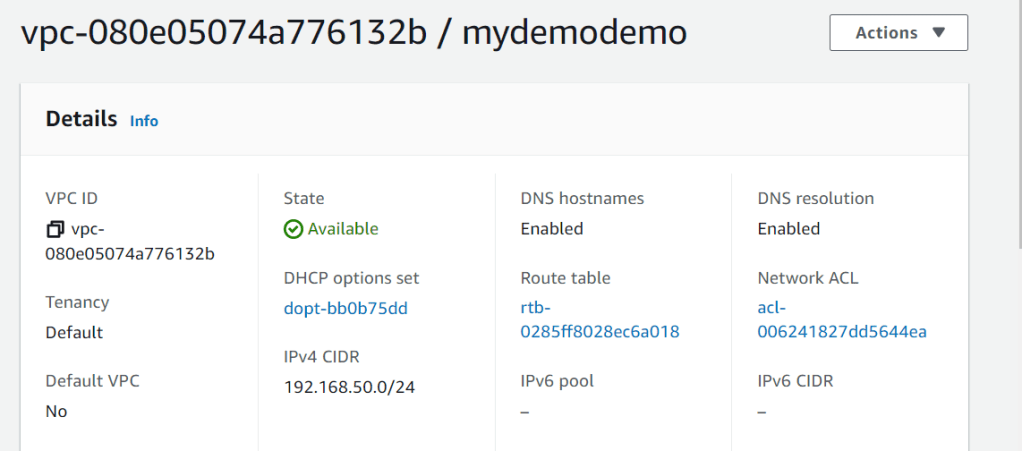 aws_vpc.mydemodemo: Creation complete after 1s [id=vpc-00566cc74b0162d72]